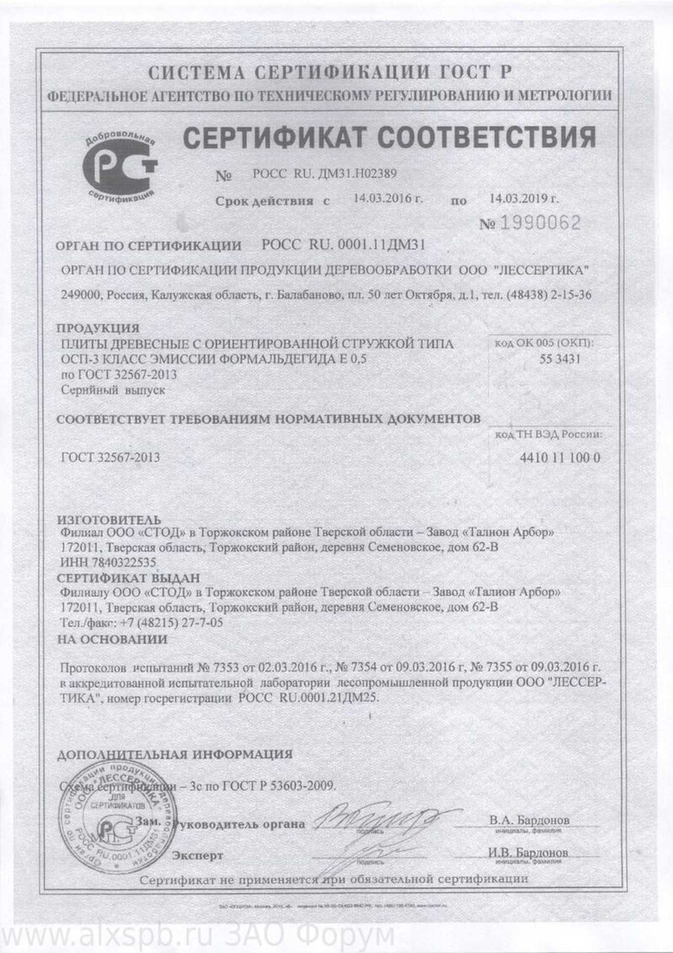 Подтвержденное сертификатами и действующими ГОСТ